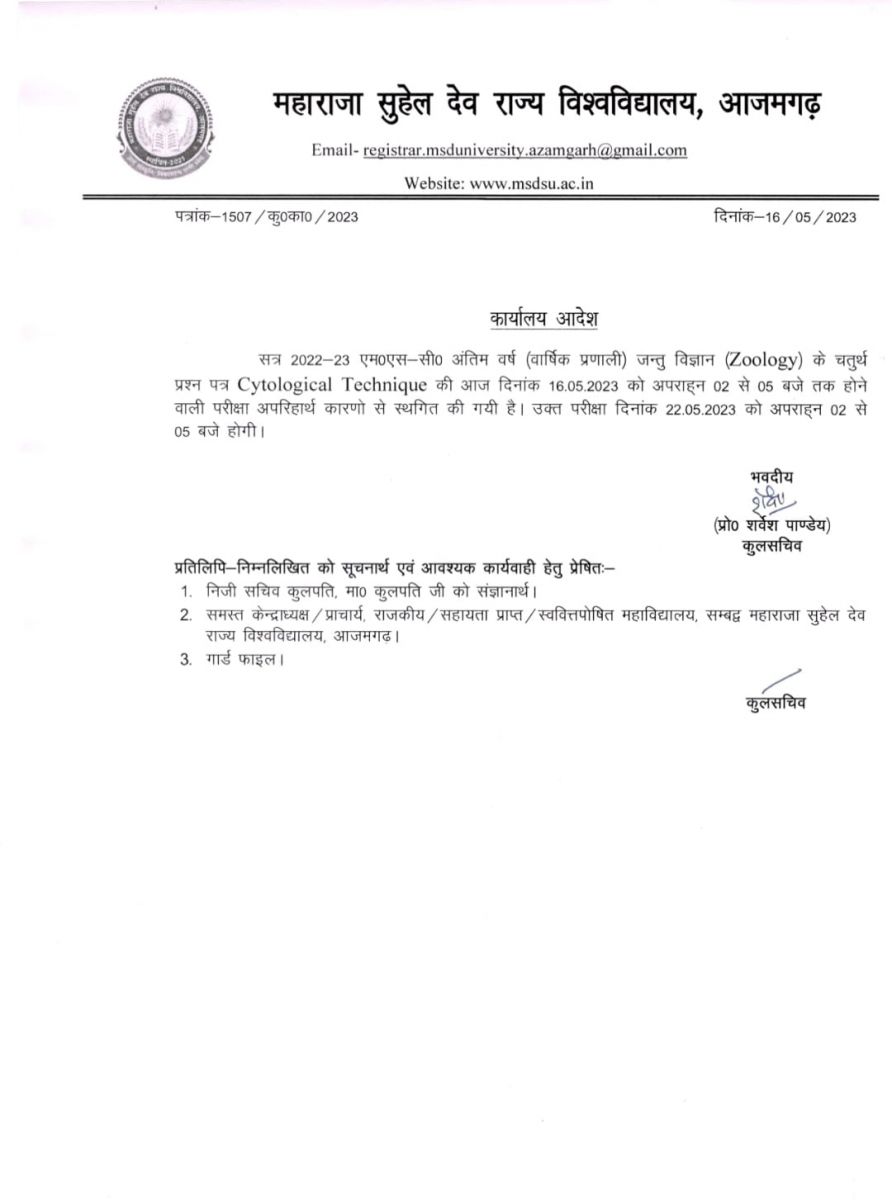 एमएससी 16 मई की परीक्षा स्थगित के संबंध में|