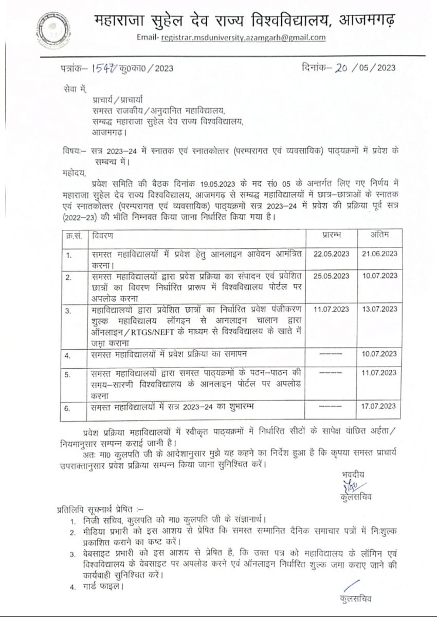 सत्र 2023-24 में स्नातक एवं स्नातकोत्तर (परम्परागत एवं व्यवसायिक) पाठ्यक्रमों में प्रवेश के सम्बन्ध में।